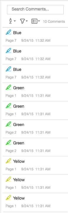 Though Adobe official stopped supporting Acrobat 9 a couple of years ago, and eventually I'll no longer be able to install it on my computers, I am perpetually on the hunt for a way to sort comments by color in Acrobat X and beyond. I think I may have found a way. It's not nearly as good as the original, built-in, thoughtfully designed way of sorting comments by color, but for those Acrobat users who no longer have Acrobat 9, yet still need to sort comments by color, this may well work for them.
